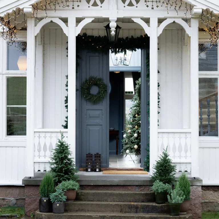 Välkomna dig själv och dina gäster med en entré inramad av barrväxter i olika former och storlekar. Det finns massor av olika former och storlekar att välja mellan som håller sig fina hela vintern.