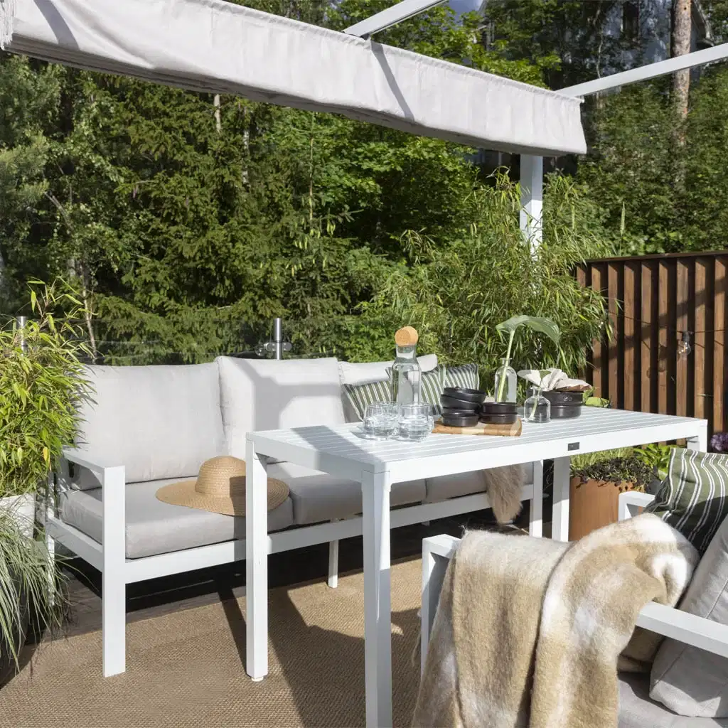 När trädgårdsmöblerna är valda är det dags att sätta pricken över i:et. Du kan inreda ute på samma sätt som du inreder inomhus. Växter, kuddar och plädar, mattor, lyktor och ljus kan lyfta uteplatsen till nya höjder. Om du frågar oss är växterna särskilt viktiga. Växter skapar ro och harmoni i uterummet, och textilier gör det mjukare och mer ombonat. Detaljerna gör att du njuter ännu mer av de värdefulla utomhusdagarna, helt enkelt.