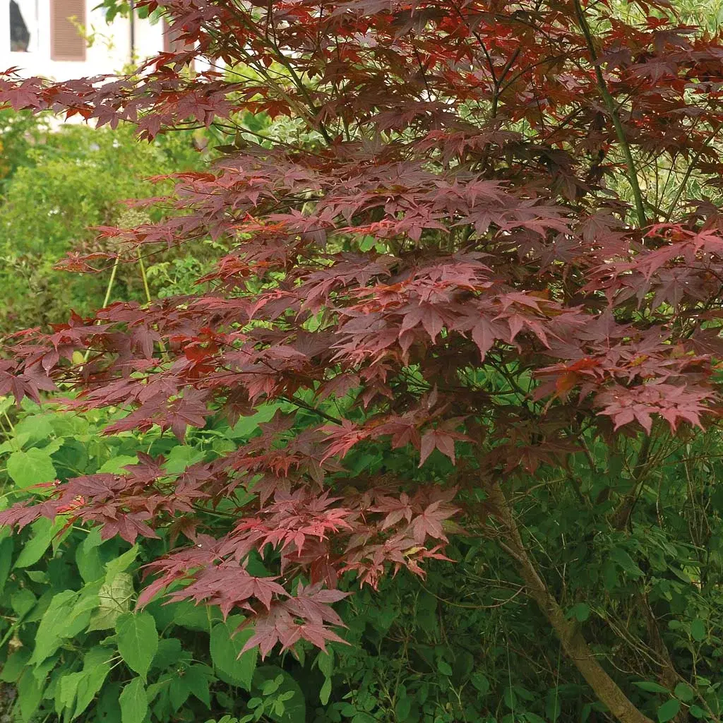Elegant och dekorativt träd med utbrett växtsätt och vackra, flikiga, mörkröda blad. Underbar som solitär eller tillsammans med perenner.