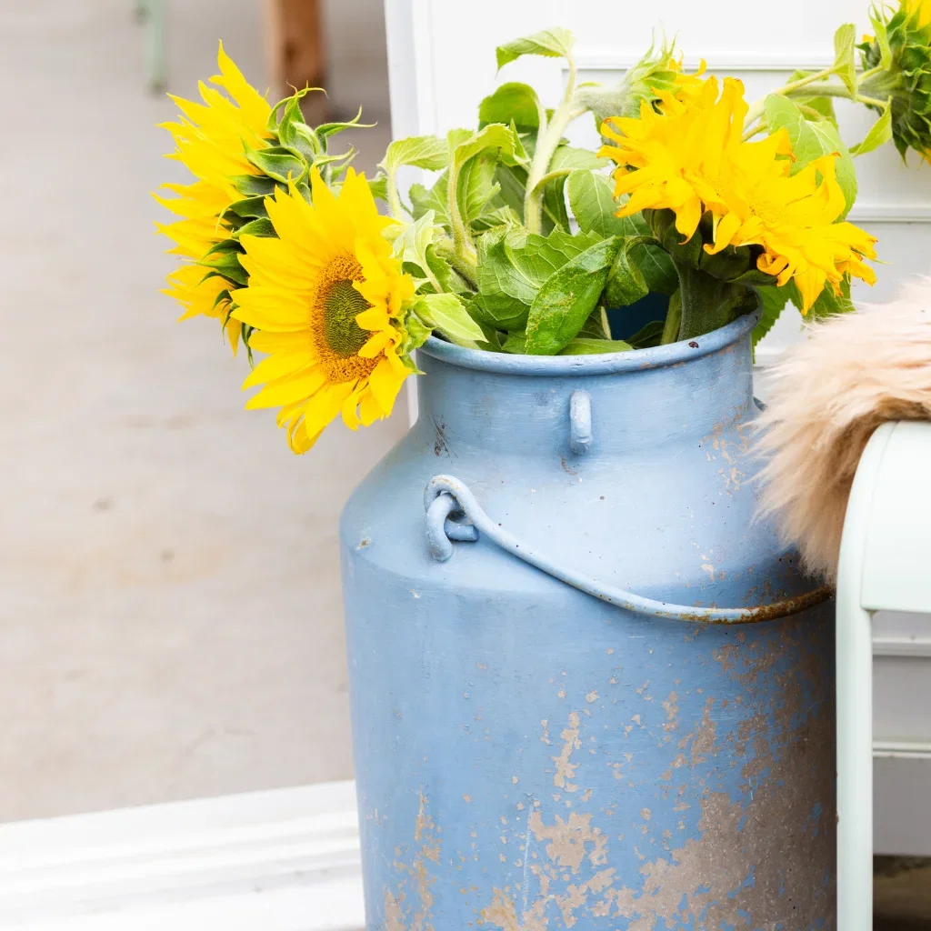 Lite passar solrosor bättre än gamla mjölkspann. Det är något nostalgiskt, tryggt och trivsamt med båda.