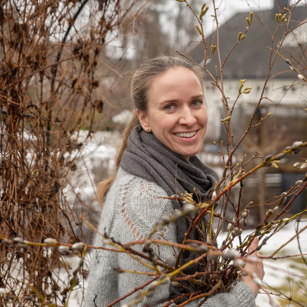 – Det är viktigt för mig att ha ständigt gröna buskar i trädgården, som buxbom, lagerhägg och idegran. Dessutom har jag turen att få klippa på min sida av grannens tujahäck. Dessa buskar är gröna året runt och perfekta att göra kransar och dekorationer av. Torkade blommor från trädgården, som klematis, silverek och hortensia, är fina att dekorera med. Det är mysigt att ha några trädgårdssysslor att hålla på med även på vintern.